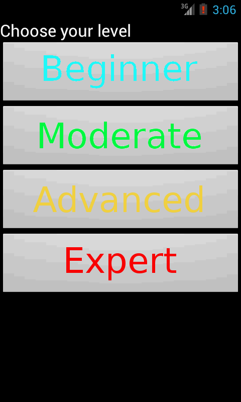 This game has 4 levels, you start in Beginner and the others are been unlocked when you get ready.